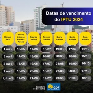 O vencimento da cota única ou da primeira parcela do Imposto sobre a Propriedade Predial e Territorial Urbana (IPTU) de...