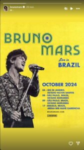Antes de show em Brasília, Bruno Mars declara amor ao Brasil: “Paixão”