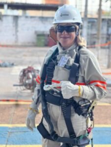 Aos 44 anos, Elaine Guimarães foi a primeira mulher a trabalhar na rede subterrânea de energia do Distrito Federal da...