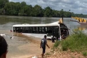 Um ônibus caiu de uma balsa dentro do Rio Moju, no nordeste do Pará, na manhã desta segunda-feira (30/12). Uma...