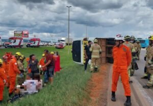 O micro-ônibus que tombou com mais de 30 pessoas a bordo na BR-070 pertence a um pastor. De acordo com...