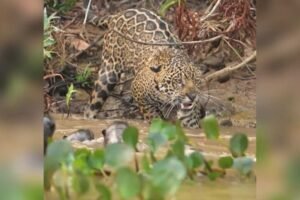 Um grupo de quatro ariranhas encararam e fizeram uma onça-pintada recuar de um possível ataque. A imagem foi registrada pelo...