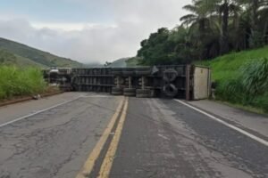 Um tombamento de uma carreta na manhã desta segunda-feira (30) deixou a BR-267, na altura do km 186, totalmente interditada....