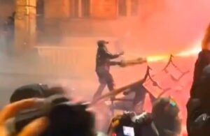 Pela segunda noite consecutiva, tropas de choque da polícia da Geórgia usaram gás lacrimogêneo e canhões de água contra milhares...
