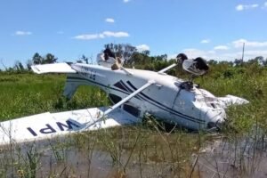 Um avião de pequeno porte, modelo Cessna Aircraft 182S, caiu em uma fazenda, no município de Aquidauana, no Pantanal de...