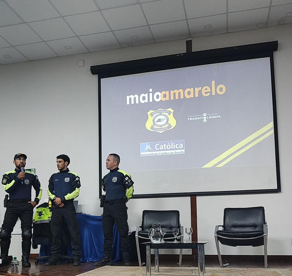 Convidados pela coordenação de Engenharia Civil da Universidade Católica de Brasília (UCB), em Taguatinga, agentes de trânsito rodoviário do Departamento de Estradas de Rodagem do Distrito Federal (DER-DF) estiveram, na última quinta-feira (23), na unidade de ensino superior para ministrar uma palestra sobre temas cruciais para a segurança no trânsito.