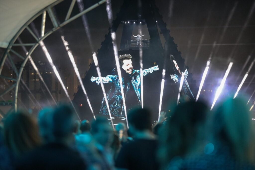 As pessoas começaram a chegar logo cedo ao local para prestigiar as atrações iniciais e garantir o melhor lugar para assistir ao renomado artista. O palco em forma de pirâmide, com 30 metros de altura, marcou a história da capital. O cenário foi invadido por celulares em busca de fotos e selfies.