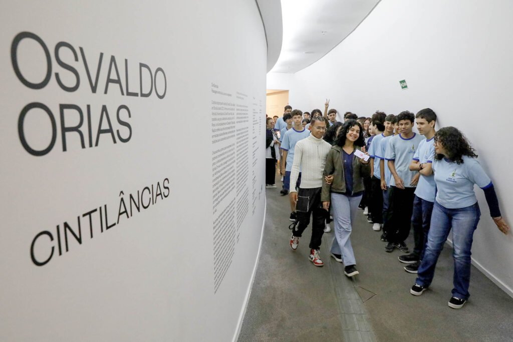 “Uma experiência única”. É assim que o estudante Carlos Eduardo Resende, de 16 anos, resumiu a oportunidade de visitar, nesta quinta-feira (23), a exposição Cintilâncias: Passagens entre a luz, a cor e o esplendor, em exibição no Museu Nacional da República. O adolescente faz parte de uma das turmas do Centro de Ensino Médio 12, em Ceilândia, que puderam acompanhar de perto as obras do artista costa-riquenho Osvaldo Orias.