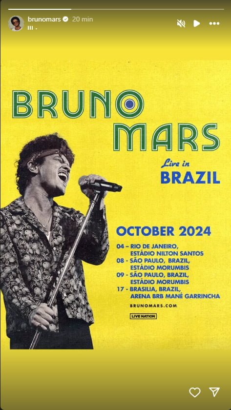 Antes de show em Brasília, Bruno Mars declara amor ao Brasil: “Paixão”