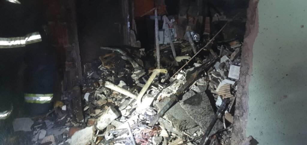 No apartamento em que aconteceu o incêndio, a cena é de destruição completa (veja abaixo).