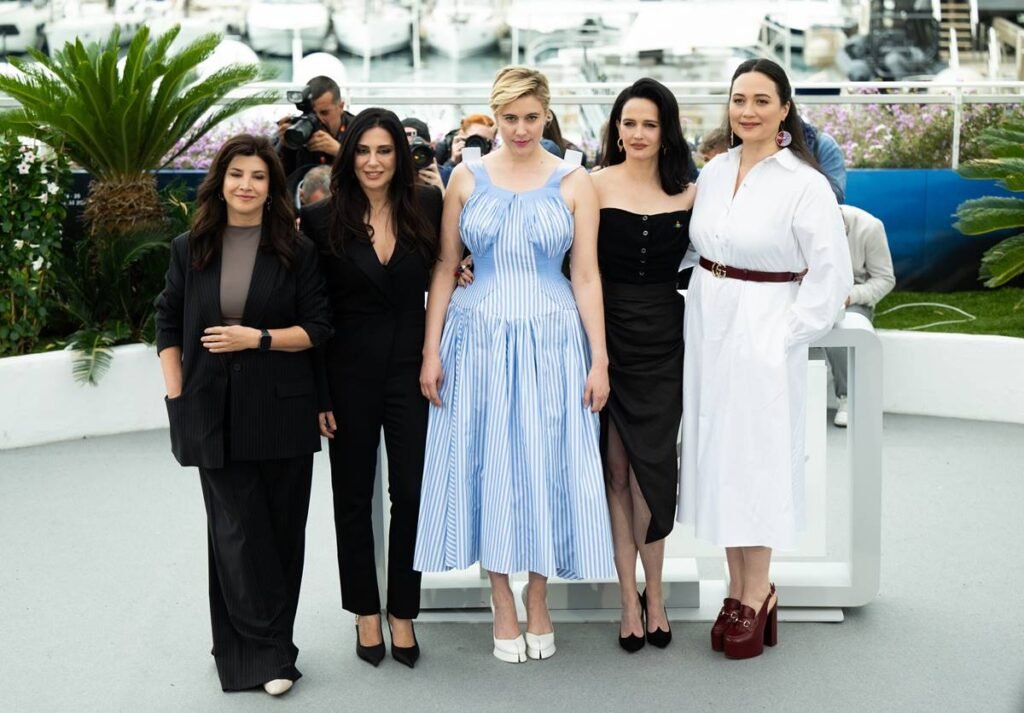 Os membros do júri, Ebru Ceylan, Nadine Labaki, presidente do júri, Greta Gerwig, Eva Green e Lily Gladstone participam da chamada fotográfica do júri no 77º Festival Anual de Cinema de Cannes
