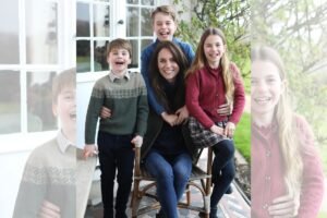 Está lá: a rainha Elizabeth II esmera-se em uma tentativa de sorriso rodeada de netos e bisnetos na residência real...