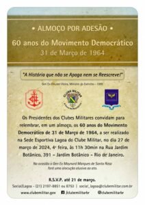 O Clube Militar realizará, no próximo dia 31, um almoço de comemoração aos 60 anos do golpe de Estado que...
