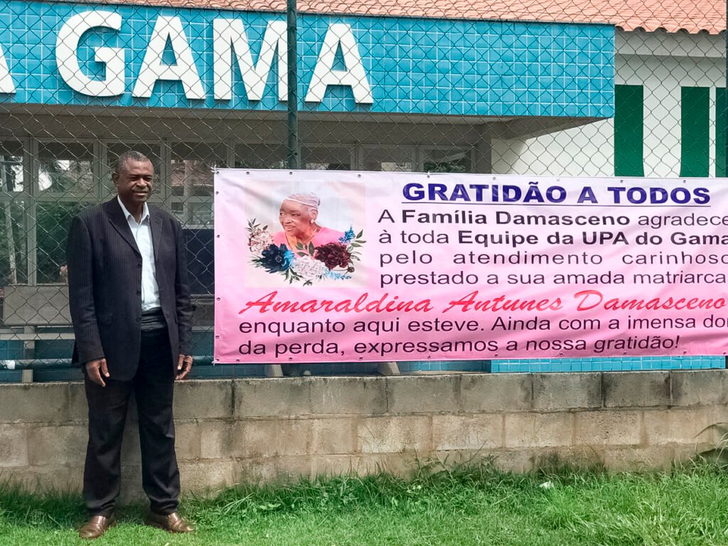A mãe dele, Amaraldina Antunes Damasceno, de 93 anos, foi levada pelo Serviço de Atendimento Móvel de Urgência (Samu) até a UPA Gama no dia 29 de fevereiro e ficou internada até o dia 7 de março, quando faleceu. Durante os dias da internação, ela ficou aos cuidados médicos da equipe multidisciplinar da unidade, que envolve médicos, enfermeiros, técnicos de enfermagem, nutricionistas, assistentes sociais e demais colaboradores.