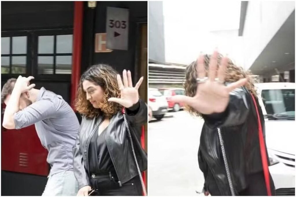 Camila Moura e homem desconhecido escondendo o rosto em saída de motel