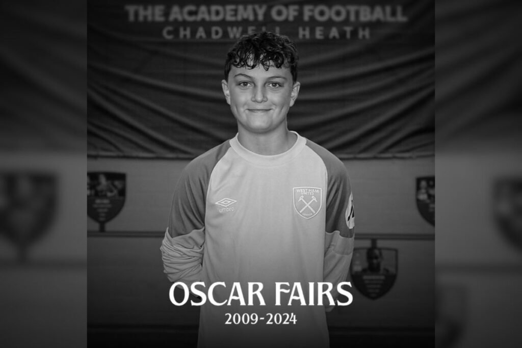 O clube West Ham, da Inglaterra, informou que um jovem goleiro das categorias de base morreu, aos 15 anos, por causa de um tumor na cabeça. Oscar Fairs era o arqueiro do sub-15 do clube londrino e enfrentava o câncer diagnosticado em de 2023.