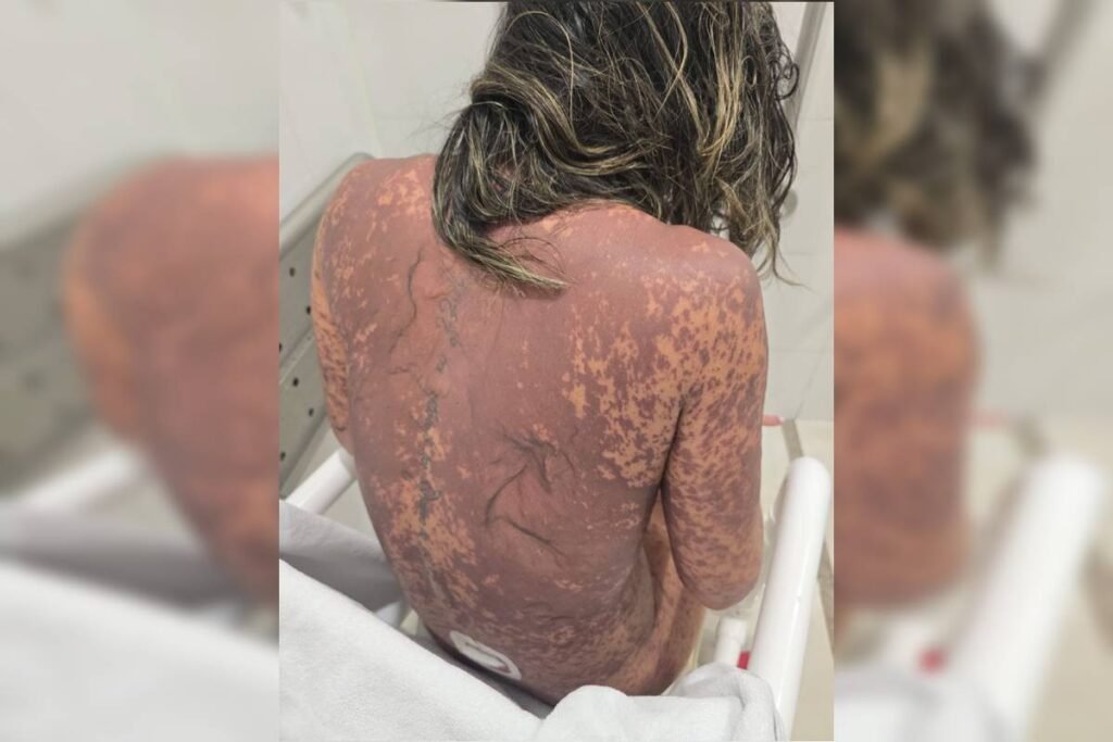 Com mais de 40ºC de febre, a patologista logo foi admitida no hospital, mas apenas no dia seguinte os sintomas começaram a piorar. “Foi aí que começaram as queimaduras na pele, no corpo inteiro. Os olhos ficaram mais inchados, e a boca também. É uma doença que não é fácil. Dói demais e não tem o que fazer. Nem morfina tirava a dor que eu estava sentindo”, relata a mulher.