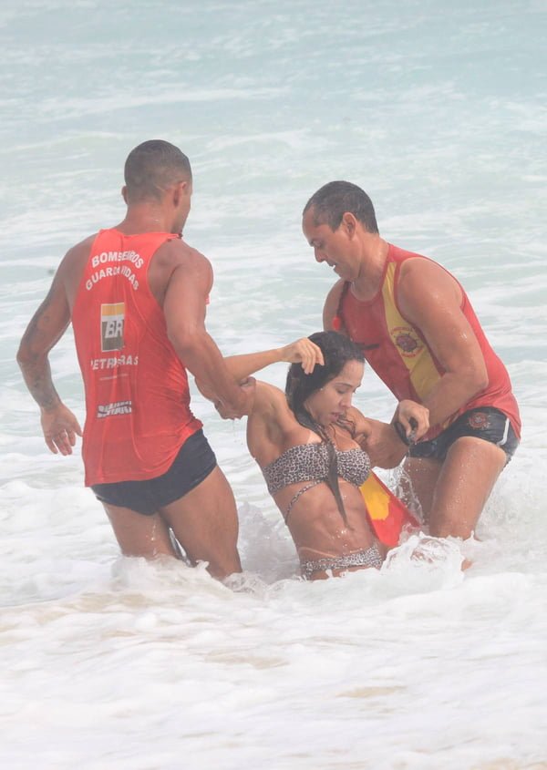 Entretanto, ao entrar no mar, a modelo se afogou e precisou da ajuda dos salva-vidas para ser retirada da água