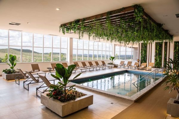 Chama a atenção o complexo de piscinas que somam 4.000 m² com opções aquecidas e 15 jacuzzis ao ar livre com vista para o Cerrado brasileiro, além de parque aquático infantil. Não importa a estação do ano, é sempre possível relaxar nas águas climatizadas das piscinas internas e externas.