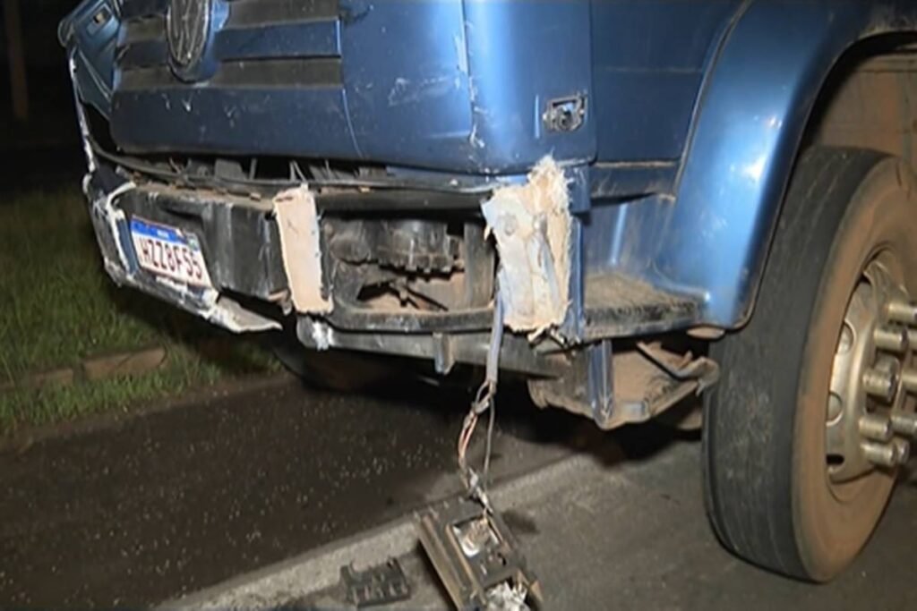 O condutor do caminhão VW 23.220 azul foi avaliado e não apresentou ferimentos.