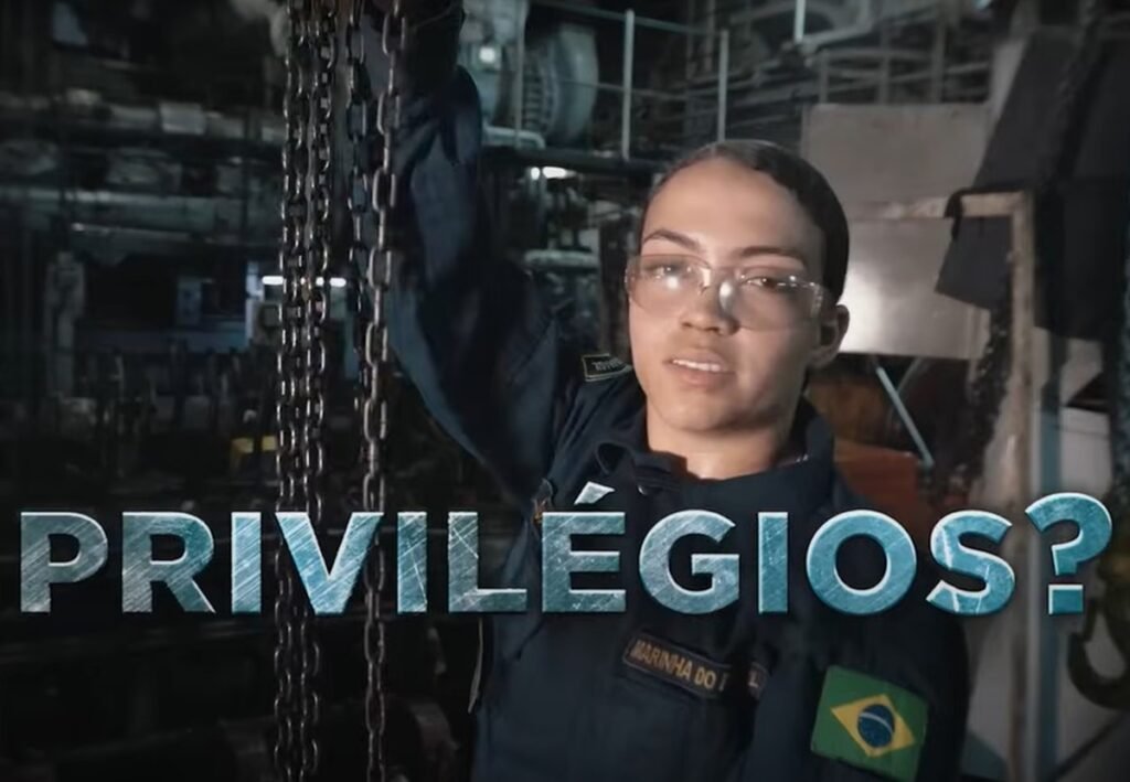 O vídeo, feito em comemoração ao mês do Dia do Marinheiro, compara pessoas em momentos de lazer com militares trabalhando duro e sob pressão. No fim, uma militar questiona: “Privilégios? Vem para a Marinha”.