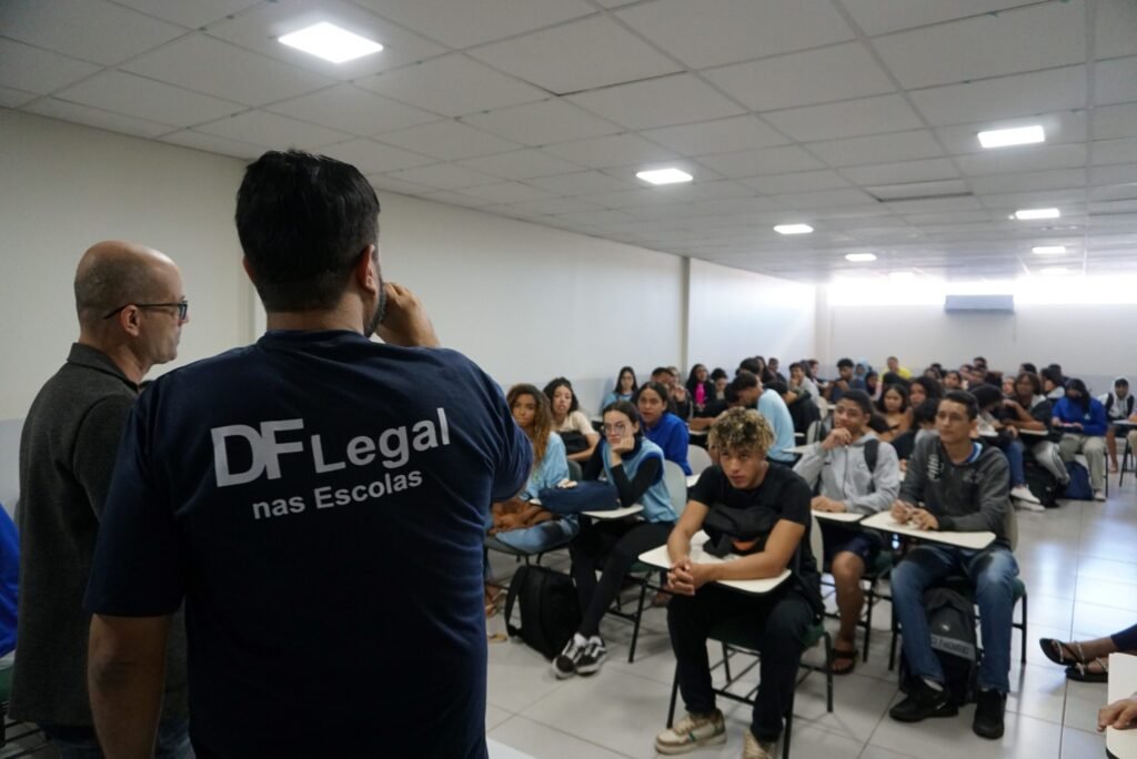 Com cara nova para o ano de 2024, a Secretaria DF Legal realizou, nessa quinta-feira (9), no Centro Educacional (CED) Zumbi dos Palmares, em São Sebastião, mais uma edição do programa DF Legal nas Escolas. Participaram do evento 170 alunos do 3º ano do ensino médio.