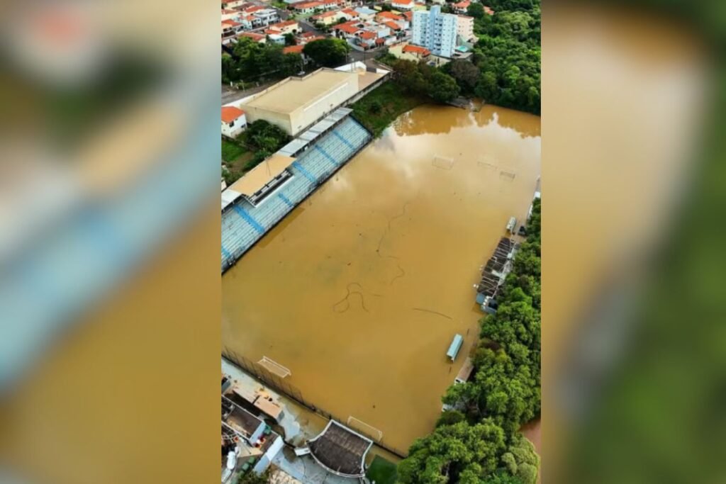 Rio Tietê transborda e alaga estádio sede da Copinha no interior de SP