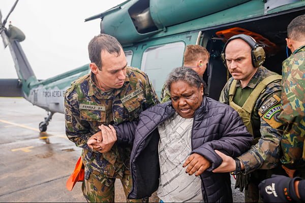 Resgate de pessoas afetadas pelas chuvas no Rio Grande do Sul, na Base Aérea de Santa Maria