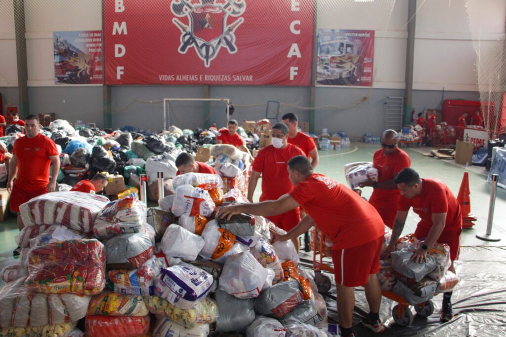 No Centro de Capacitação Física (Cecaf) do Corpo de Bombeiros Militar do Distrito Federal já foram triadas e destinadas mais de 300 toneladas de produtos doados à base da FAB, responsável pelo envio às cidades gaúchas atingidas pelas enchentes | Fotos: Matheus Souza/Agência Brasília