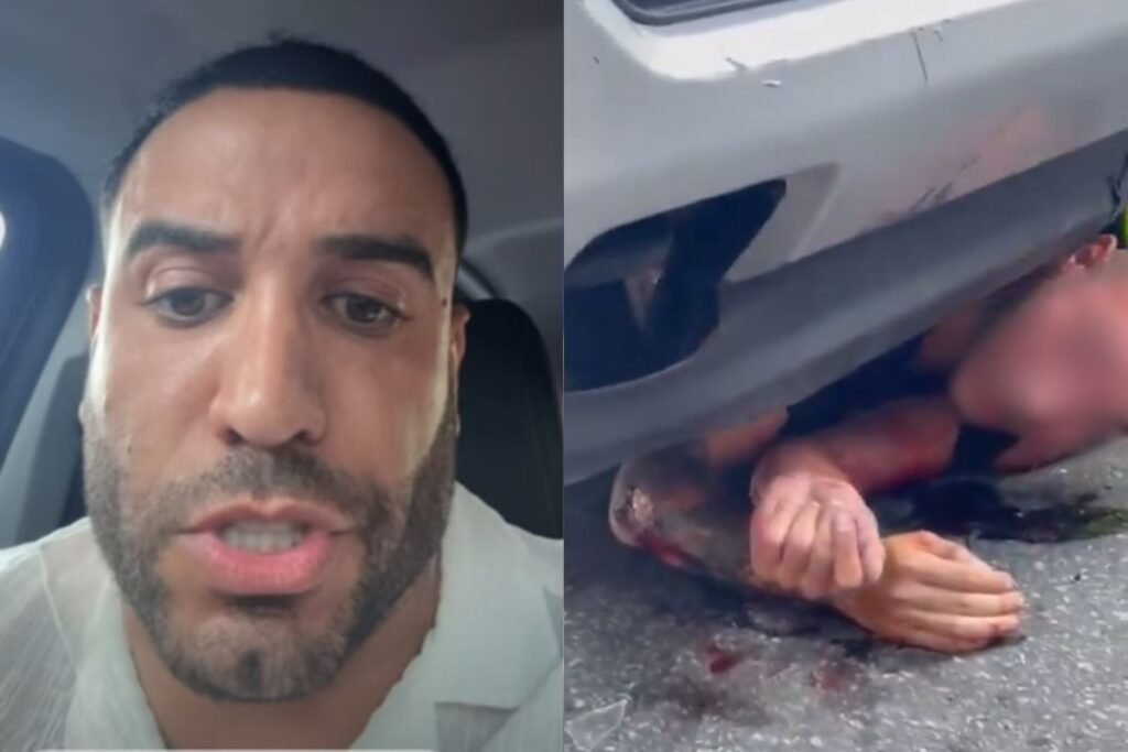 “Um cidadão de bem, trabalhando. Pastor Leonardo passou em cima do cara”, diz a mulher que fez o vídeo. “Não dorme, não”, fala a testemunha ao homem, identificado como Marcos Matheus, enquanto ele ainda estava embaixo do carro.