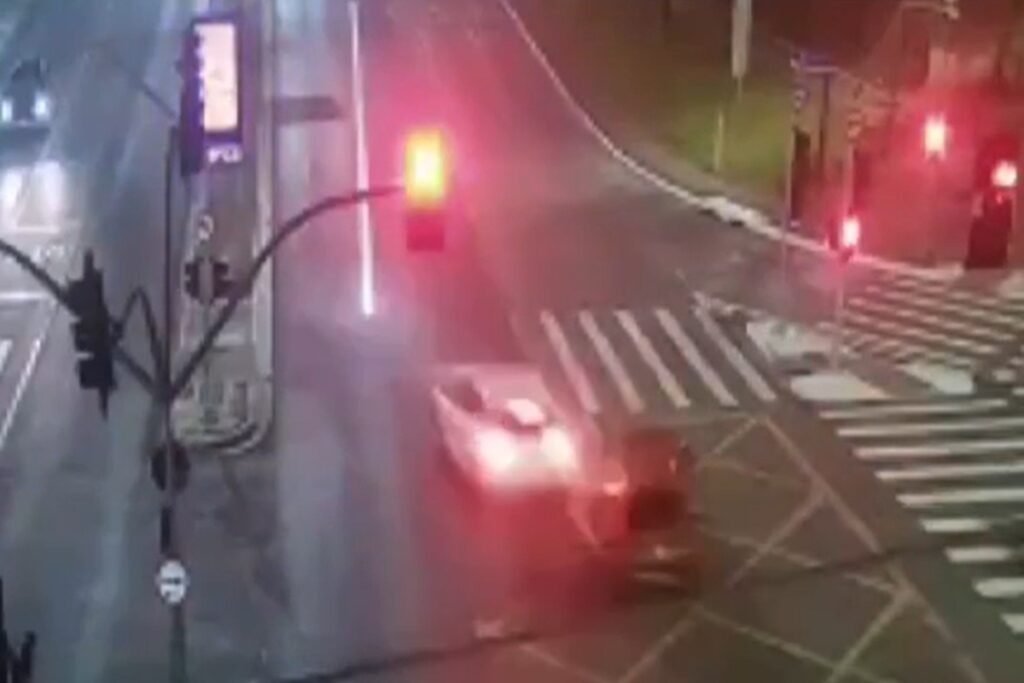 Câmeras de segurança registraram o momento em que o Jaguar branco avança o sinal na avenida, no cruzamento com a Avenida República do Líbano. O carro de luxo estava em alta velocidade quando colidiu com a parte da frente do Kwid laranja. O carro de aplicativo rodou várias vezes na pista, e o Jaguar continuou em frente, desgovernado, chegando a invadir a pista contrária.
